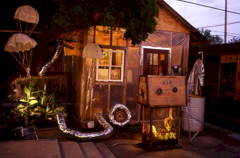 Dion Laurent's ongoing series of Emergency Shelter/Studio Projects are self-contained, self sustaining bio-environment, solar, wind, and geo-thermal emergency shelter projects, serving also as the artist's home and studios for his related EarthMan1 and EarthMan 2 performances and projects.. This Emergency Shelter Studio Project series has developed and been exhibited internationally and widely viewed in Europe, the US and via the internet. The Shelter Project(2002 - 2003) has been reviewed on Furtherfield.org, and all installations and related EarthMan performances have been widely promoted on furtherfield.org(London), rhizome.org(New Museum,NY,NY), and by numerous international art blogs and news media since 2003. These shelter projects are based on the US government and Cold War era Emergency Shelter initiatives. 2003 London Review